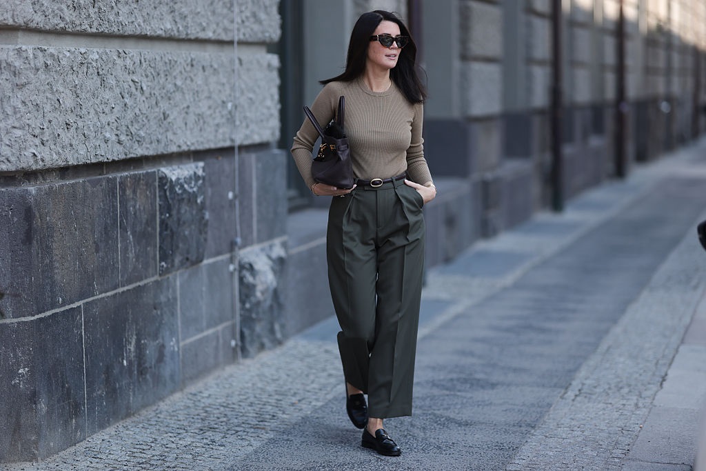 Сентябрь навевает академический вайб. Классические брюки, мягкий свитер и лоферы создают образ «почти униформы», идеально соответствующий духу нового сезона