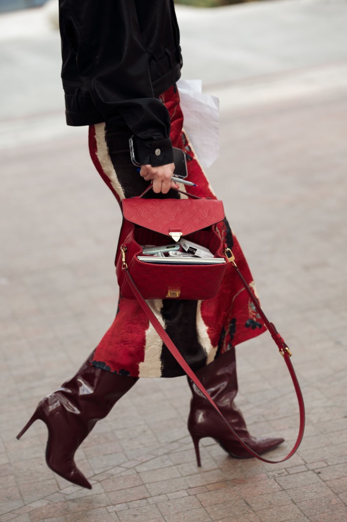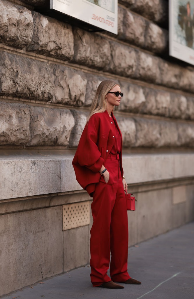 И напоследок — несколько альтернатив для тех, кто предпочитает использовать красный дозированно. Попробуйте стильные широкие брюки в сочетании с мягким свитером, добавьте шарф и элегантную сумку среднего размера — и образ заиграет нотами роскоши.