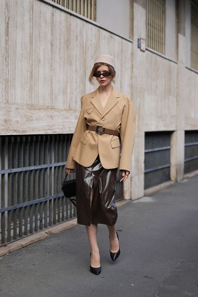 Современный стиль: минимализм и нейтральные тона — шерстяные брюки свободного кроя, структурированный жакет, лаконичные украшения.
